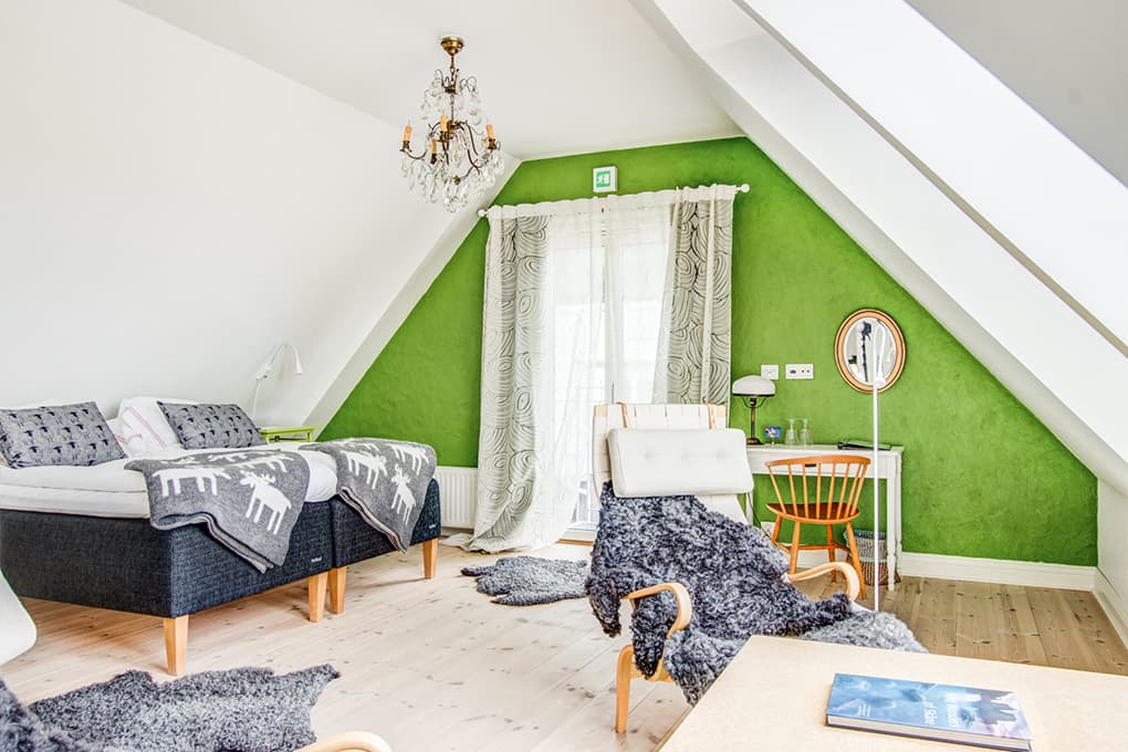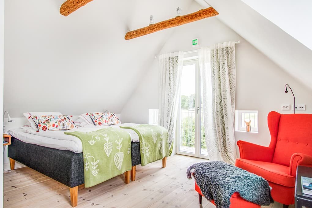 Tio härliga rum fördelat på två olika hus, sköna sängar för ljuva drömmar och gott om plats för ”soffhäng” och umgänge.