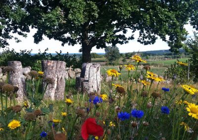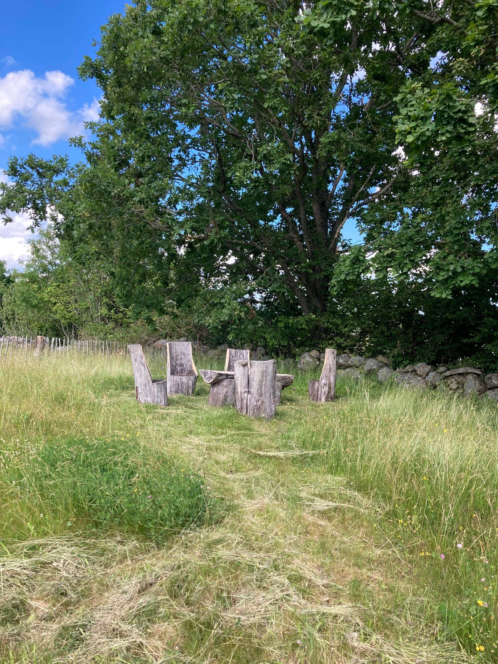 Det jag har jobbat mycket med hela tiden är att skapa miljöer utifrån de förutsättningar som finns på gården. Jag har försökt skapa rum utifrån samma idé som med denna stenkokong, att det ska vara miljöer som ska vara sköna att vara i och att de tillför något till upplevelsen.