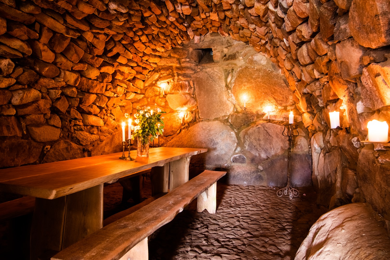 Det hela började med det gamla stenvalvet som restaurerades och blev till en naturens ”kokong” ett stenkast från gården. Här har vi serverat både musik, middagar och mingel. Sommartid har vi möblerat om till Cocoon Glamping. Idag används den främst för våra grupper som vill boka till en upplevelse i den.