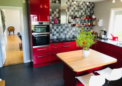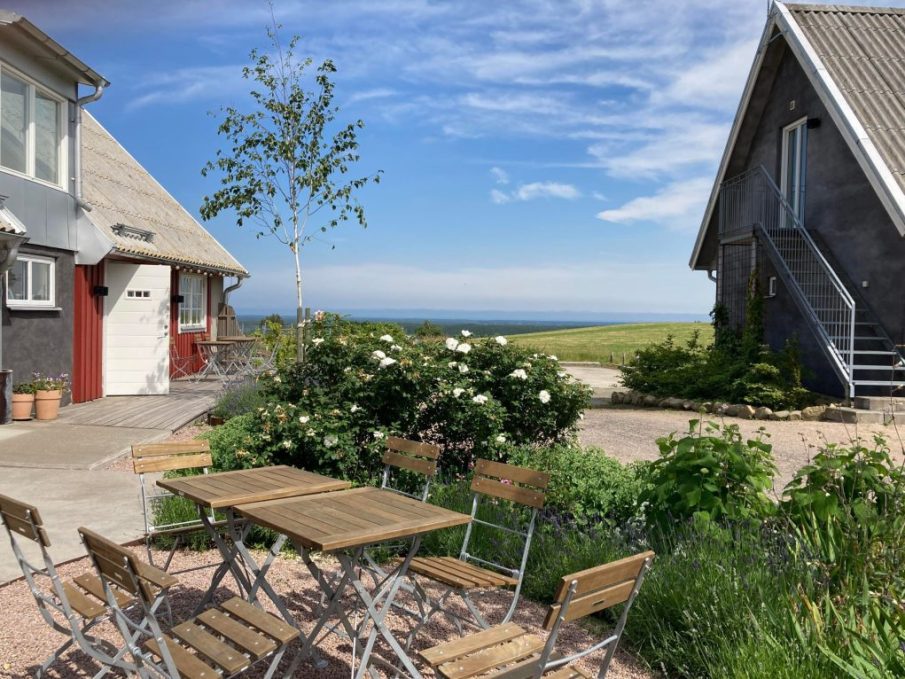 Tio härliga rum fördelat på två olika hus, sköna sängar för ljuva drömmar och gott om plats för ”soffhäng” och umgänge. Alla rum har privata badrum med dusch. Lakan och handdukar ingår. Fiber/wifi. Fullutrustat kök i ena huset, enklare kök i andra huset. Kyl, frys, och vedkamin. Grill och vedeldad pizzaugn i trädgården.
